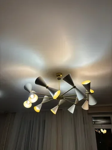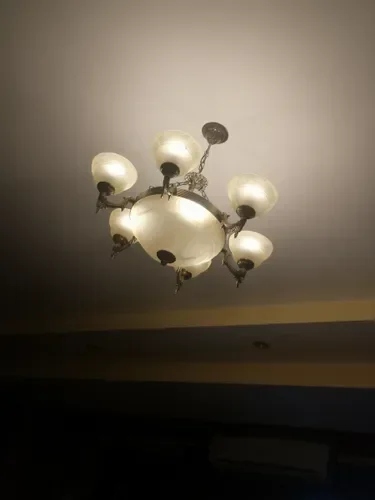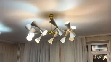 В целом хорошая люстра. Очень внимательно смотрите за соотношением размера комнаты и люстры. Плафоны большие, на подвесной потолок необходимы усиленные кронштейны. В итоге мы пока повесили её в усеченном виде как временную, будем менять, так как не угощали с габаритами.