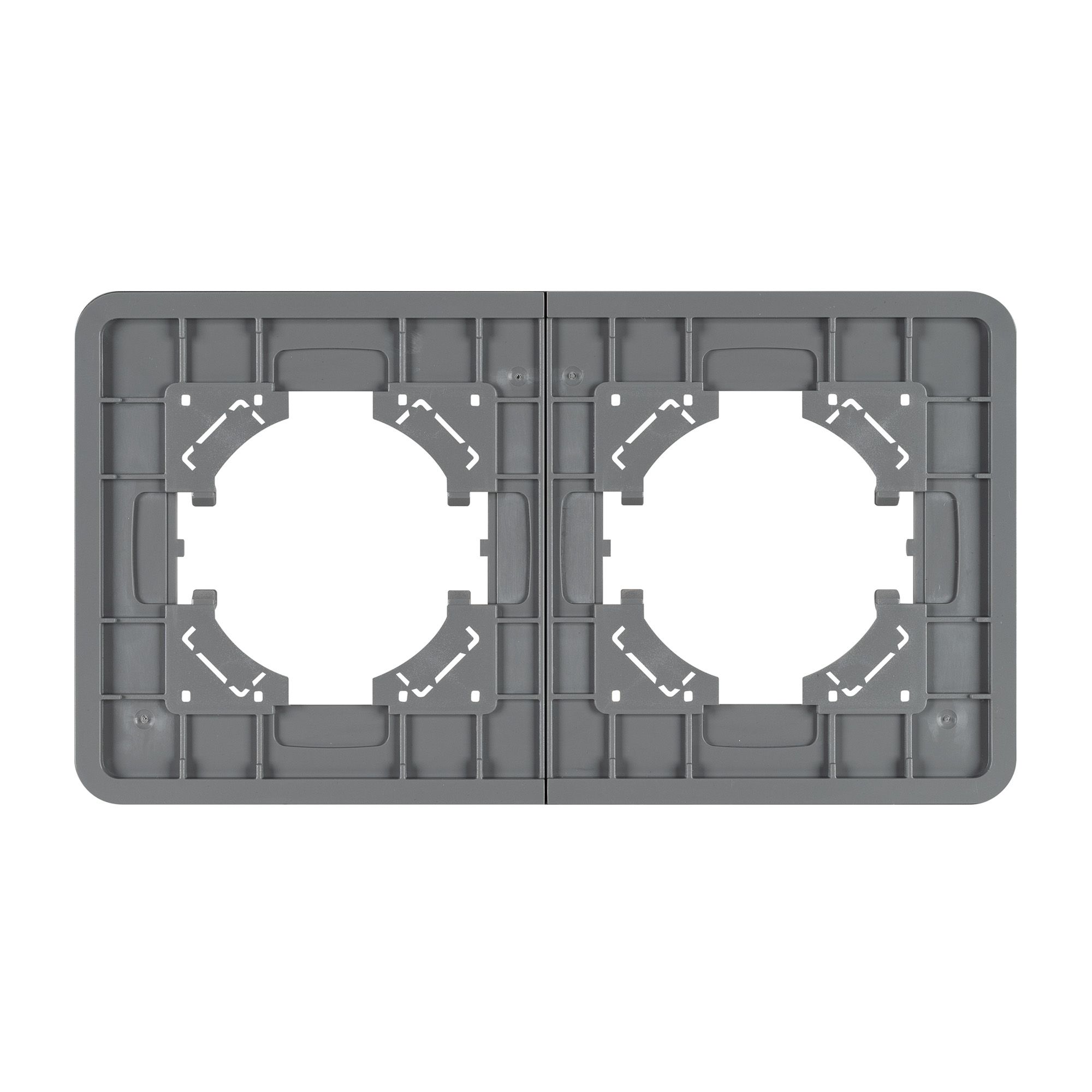 Рамка стеклянная на 2 поста, под встраиваемый механизм. Цвет - серый с Soft-Touch покрытием. Среднего уровня герметичности IP20. Ориентация монтажа - горизонтальная (основным ориентиром служат посадочные выступы для накладки механизма).