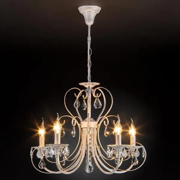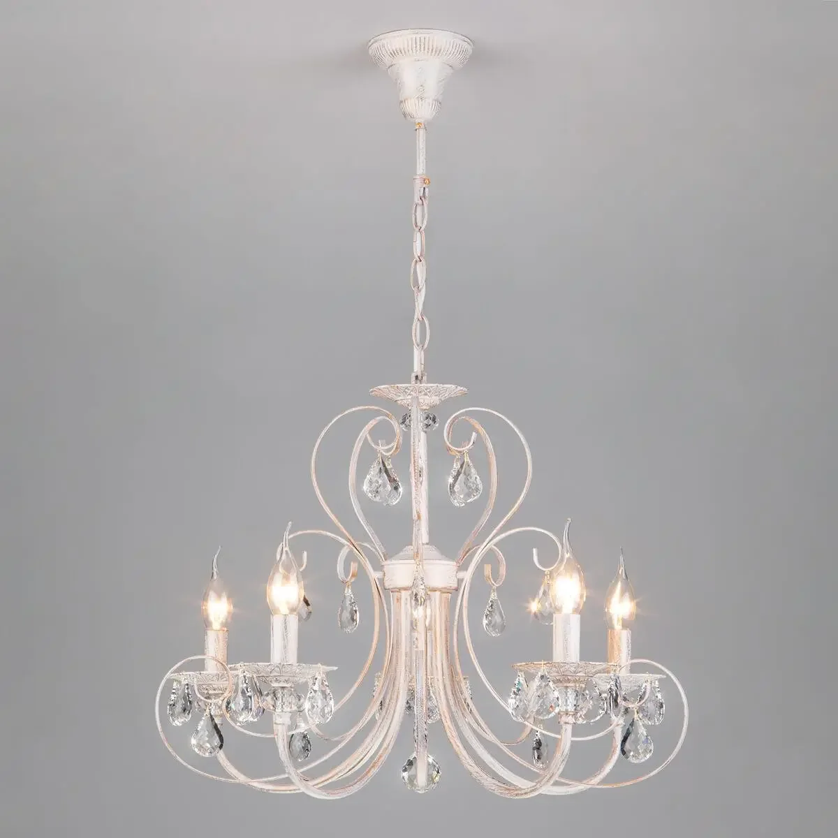 Подвесная люстра Eurosvet 3305/5 белый с золотом/прозрачный хрусталь Strotskis
