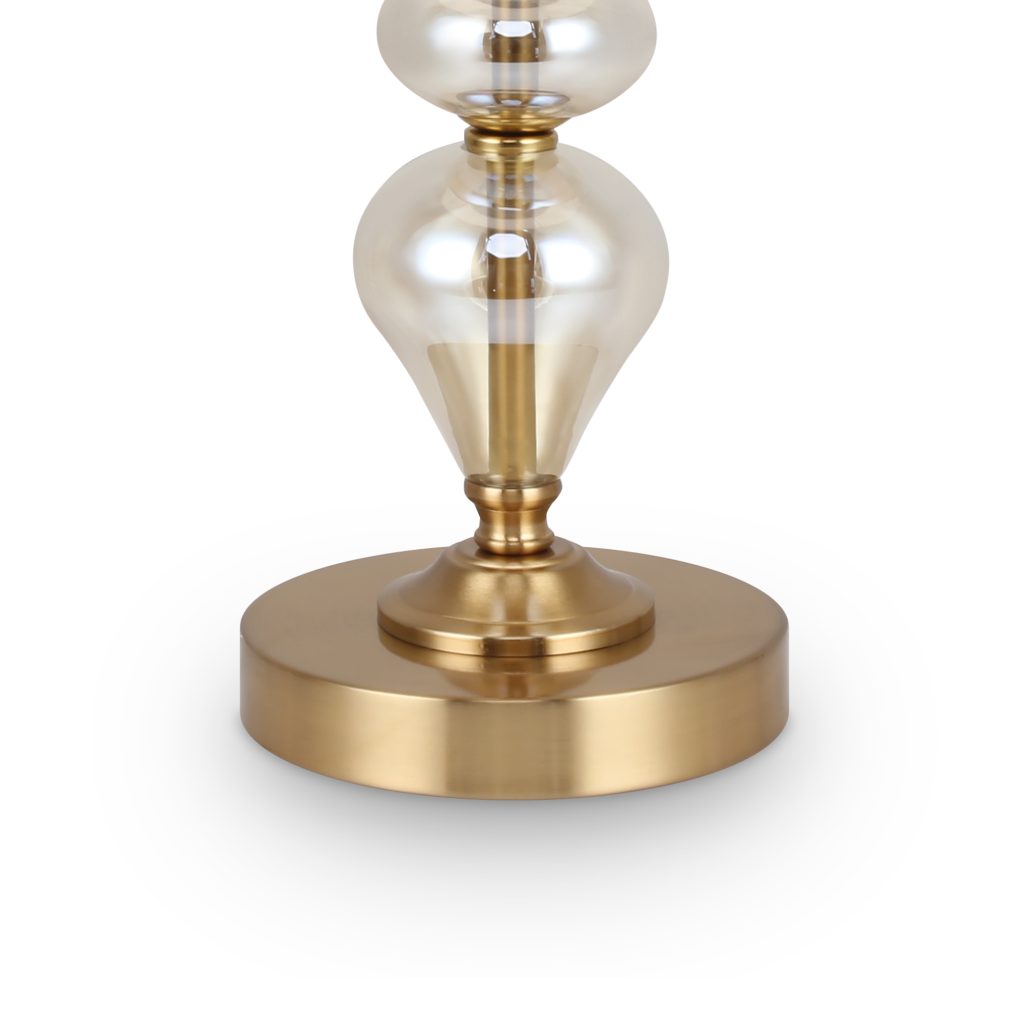 Арматура из металла, цвет — латунь. Плафоны — тканевые, молочного цвета. Металлическая конструкция декорирована выдувными стеклянными элементами с перламутровым напылением. Источником света служит лампа с цоколем Е14.