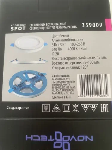 359009 SPOT NT23 295 белый Светильник встраиваемый светодиодный (три сценария работы) IP20 LED 4000К+RGB 6W+3W 100-265V 540Лм SPAN