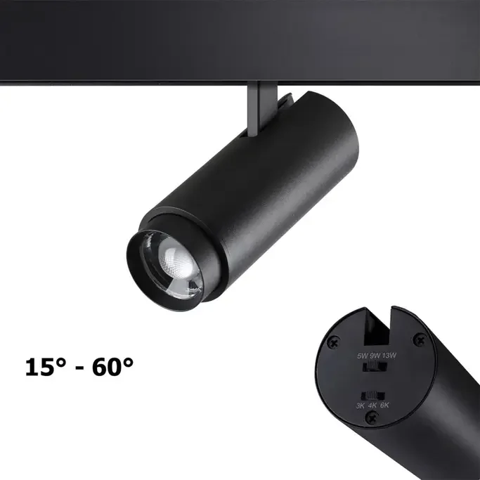 359207 SHINO NT23 070 черный Трековый светильник для низков. шинопровода с переключ. цветовой температуры и мощности IP20 LED 3000К\4000К\6000К 5W/9W/