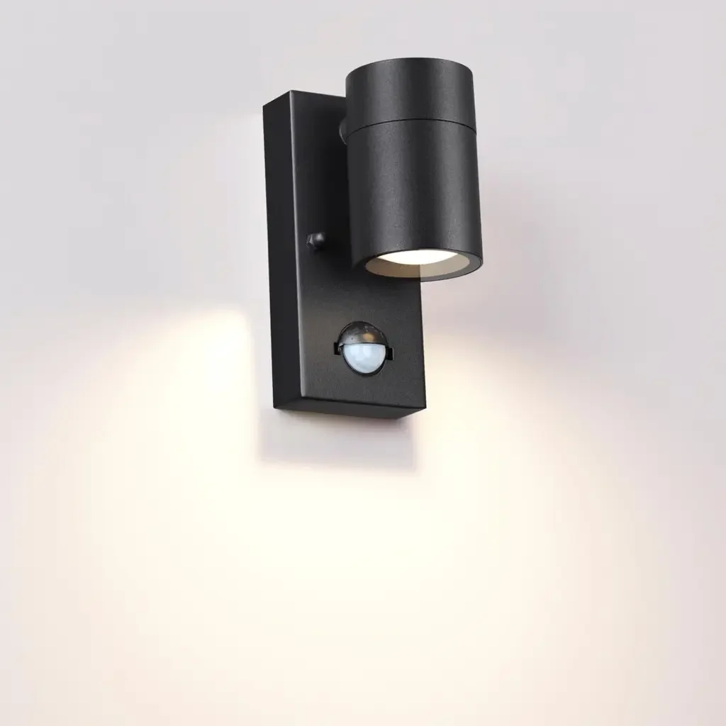 4389/1W HIGHTECH ODL23 731 черный/металл/пвх стойкий к УФ излучению Настенный светильник с датчиком движения IP44 LED GU10 7W MOTTO