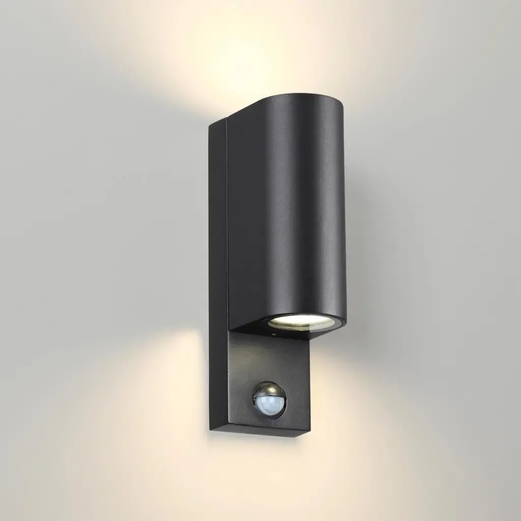4390/2W HIGHTECH ODL23 731 черный/металл/пвх стойкий к УФ излучению Настенный светильник с датчиком движения IP44 LED GU10 14W MOTTO