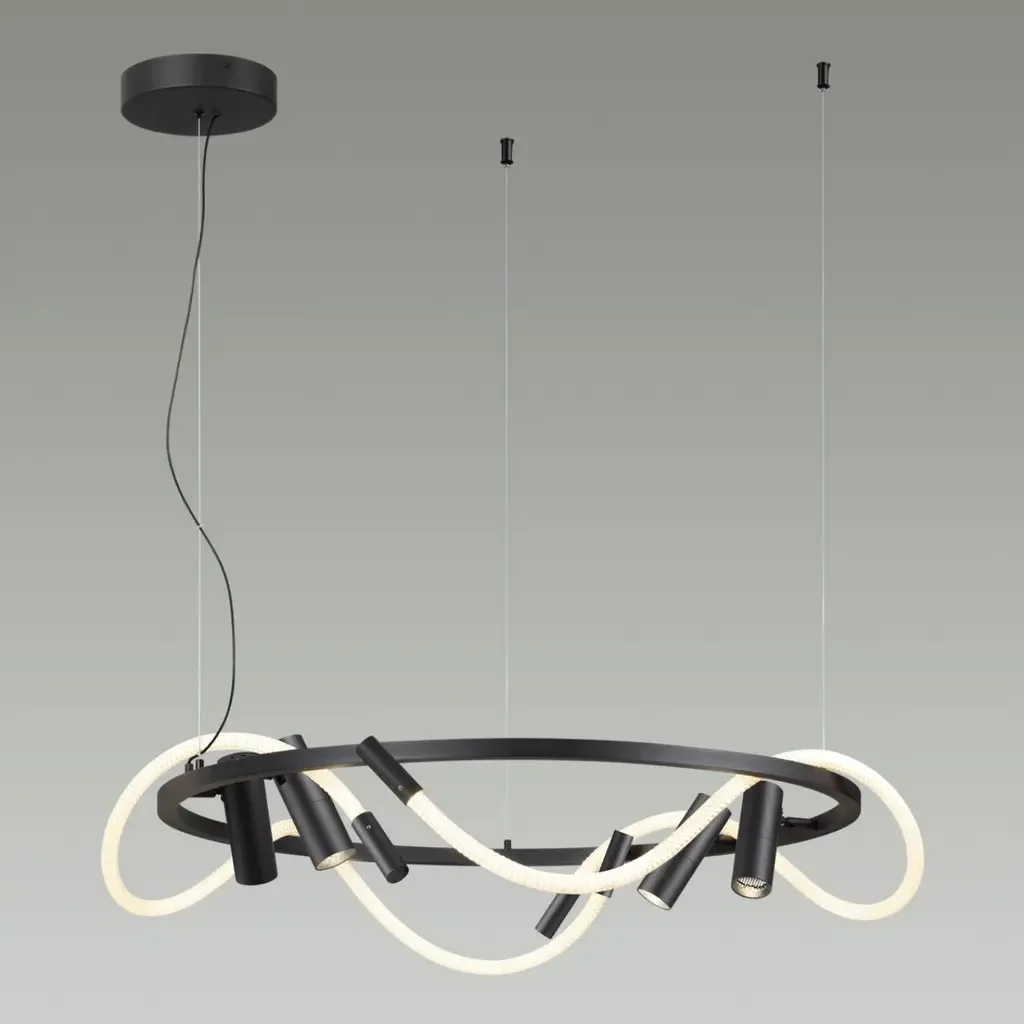 4391/55L HIGHTECH ODL24 261 черный/металл/канат Подвесной св-к с раздельн. вкл IP20 LED 50W 2020Лм 4000K CORDA