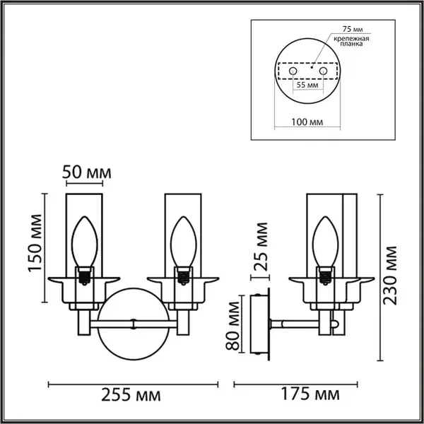 6554/2W CLASSI LN25 бронза/коньячный/металл/стекло Бра E14 2*40W 220V MADONNA