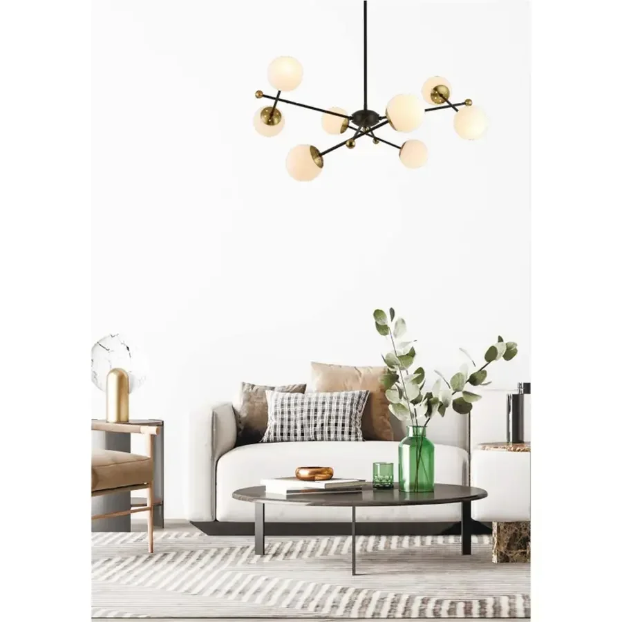 6581/8 MODERNI LN25 черный, золотой/белый металл /стекло Люстра потолочная E14 8*40W 220V MELODY
