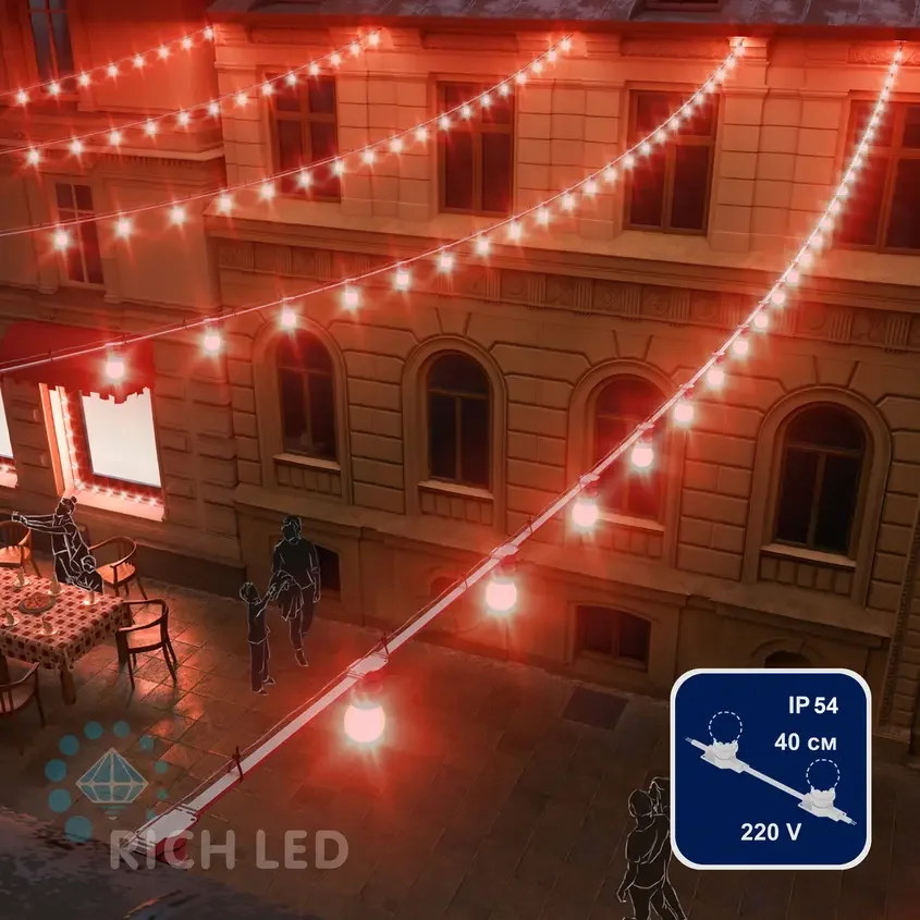 Белт-лайт Rich LED, 2-х проводной, белый, между лампами 40 см, патрон-резина, нарезка кратно 1 м