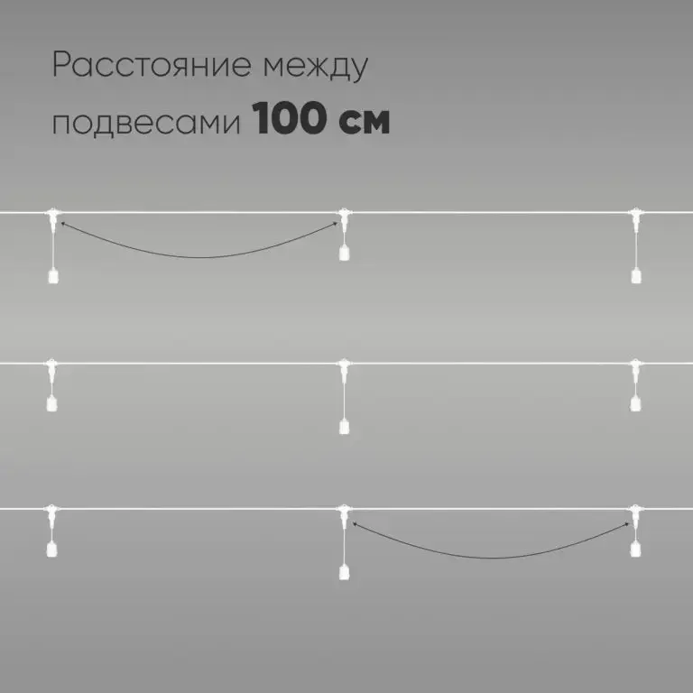 Белт-Лайт UNIBELT 5м, Провод Белый Каучук, Шаг 100 см, 5 Подвесных Патронов, IP65