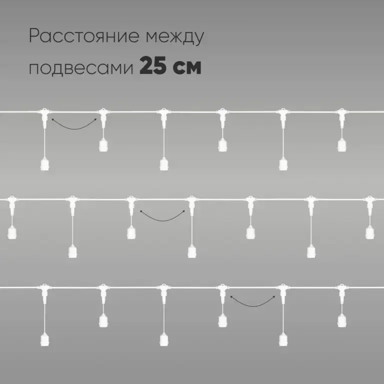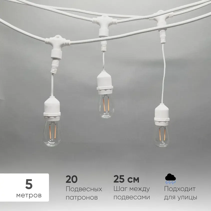 Белт-Лайт UNIBELT 5м, Провод Белый Каучук, Шаг 25 см, 20 Подвесных Патронов, IP65