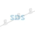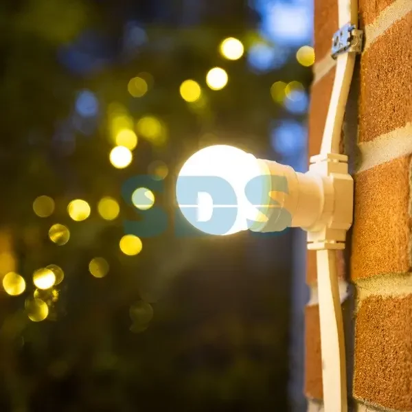 «Белт Лайт» представляет собой токопроводящую многожильную шину в виде ленты. Через определённый интервал на ней последовательно закреплены патроны Е27. Расстояние между патронами фиксировано, и в зависимости от модификации устройства может составлять 10, 15, 20 или 40 сантиметров.Гирлянды «Белт Лайт» могут быть двух типов – двужильные и пятижильные. Пятижильные имеют 2 модификации: для уличного применения с высоким уровнем влагозащиты и без специальной защиты для помещений. Двужильный «Белт Лайт» имеет только влагозащищенное исполнение. Для не влагозащищенного пятижильного провода Белт Лайт сделано исключение: на нем специальные патроны, имеющие цоколь E27 с «ножевыми» контактами, которые могут быть установлены в любом месте. Двужильные гирлянды имеют только режим непрерывного свечения, их подключают прямо к сети 220V. В отличие от них, пятижильные системы «Белт Лайт» питаются через контроллер. Они могут работать в светодинамическом режиме с использованием различных световых эффектов, например, «бегущий огонь». Традиционно гирлянды «Белт Лайт» оснащаются небольшими лампами накаливания. Но в настоящее время они уступают место разноцветным светодиодным лампам. На стороне последних огромные преимущества: маленькие размеры, увеличенный до 100 000 часов ресурс, хорошая влагозащищенность, широкий диапазон рабочих температур. Они обладают недосягаемой для ламп накаливания насыщенностью цветов и яркостью свечения, невысокой потребляемой мощностью (менее 5 Вт). Гирлянду можно разрезать, а фрагменты собирать в электрическую цепь и подключать через контроллер или напрямую по соответствующей схеме. Гирлянда «Белт Лайт» прекрасно подходит для декорирования любых архитектурных сооружений или для создания «перетяжек» между опорами освещения или деревьями. Данная гирлянда имеет 2 жилы. Расстояние между патронами 15 см. Цвет провода и патронов - белый.Рекомендация по монтажу ламп: перед вкручиванием лампы завернуть резинку на патрон, вкрутить лампочку и отвернуть резинку обратно. Правильный монтаж обеспечит влагозащиту изделия. Патроны и провод белого цвета, в бухте 667 патронов