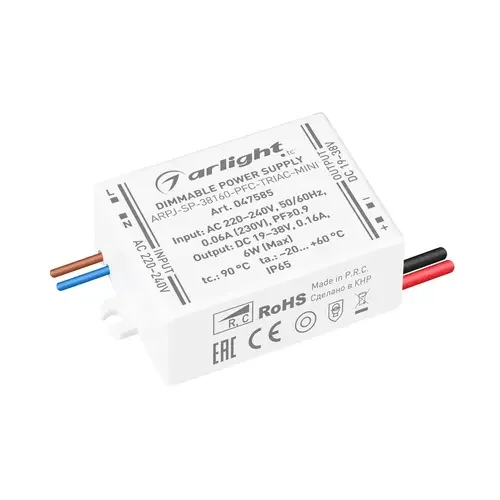 Блок питания ARPJ-SP-38160-PFC-TRIAC-MINI (6W, 19-38V, 160mA) (Arlight, IP65 Пластик, 5 лет)