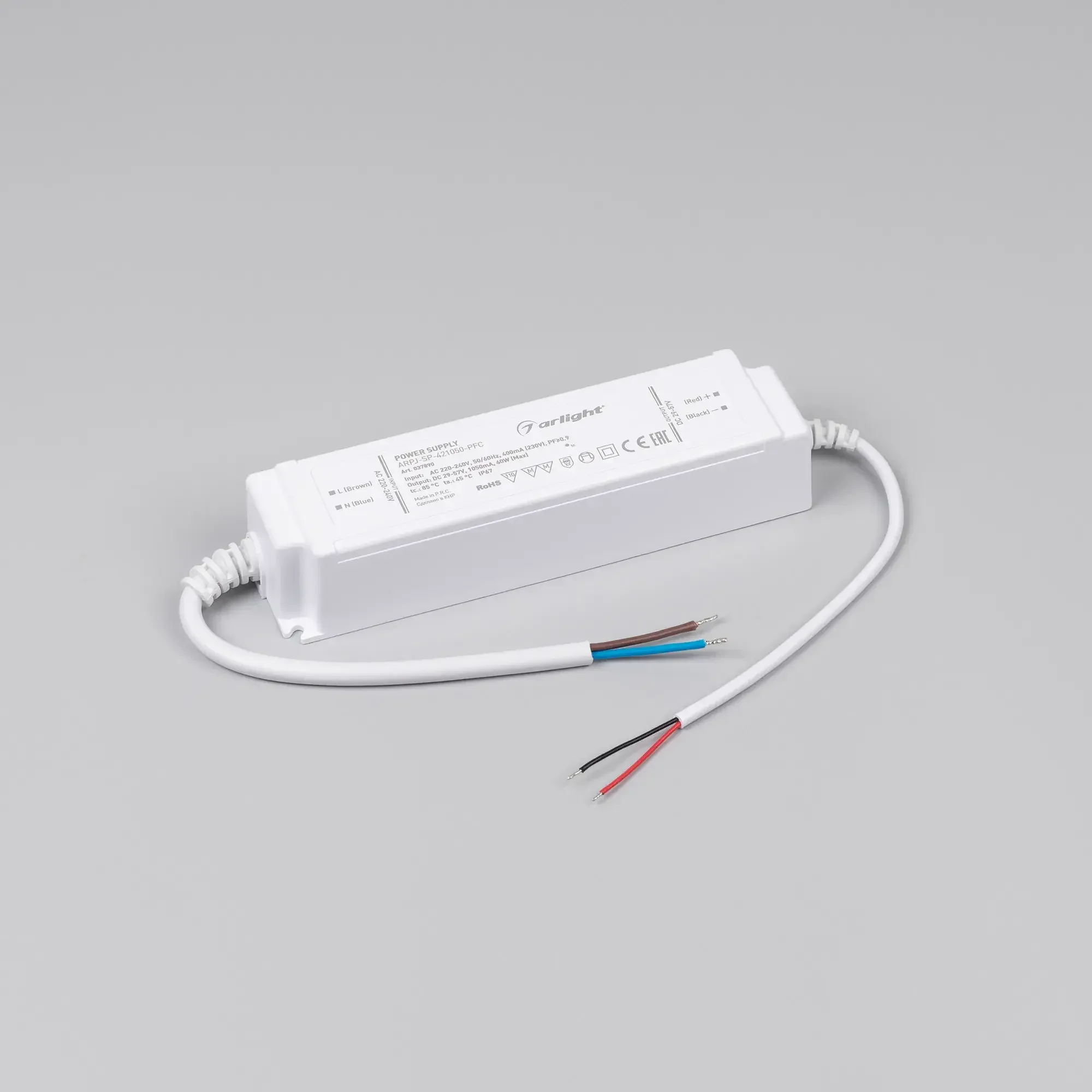 Блок питания ARPJ-SP-421050-PFC (60W, 29-57V, 1.05A) (Arlight, IP67 Пластик, 5 лет)