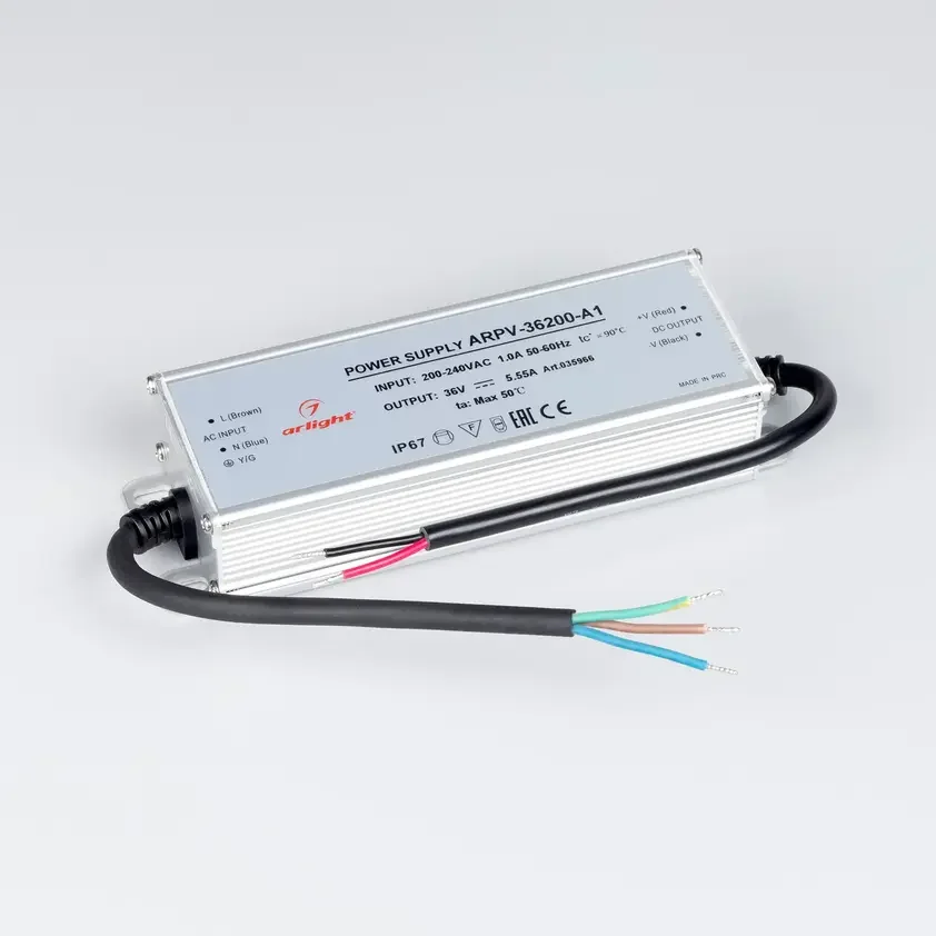 Блок питания ARPV-36200-A1 (36V, 5.55A, 200W) (Arlight, IP67 Металл, 3 года)