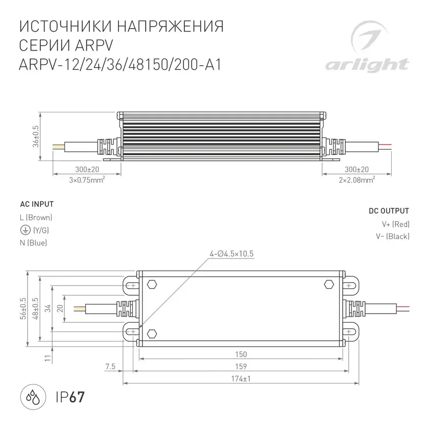 Блок питания ARPV-36200-A1 (36V, 5.55A, 200W) (Arlight, IP67 Металл, 3 года)