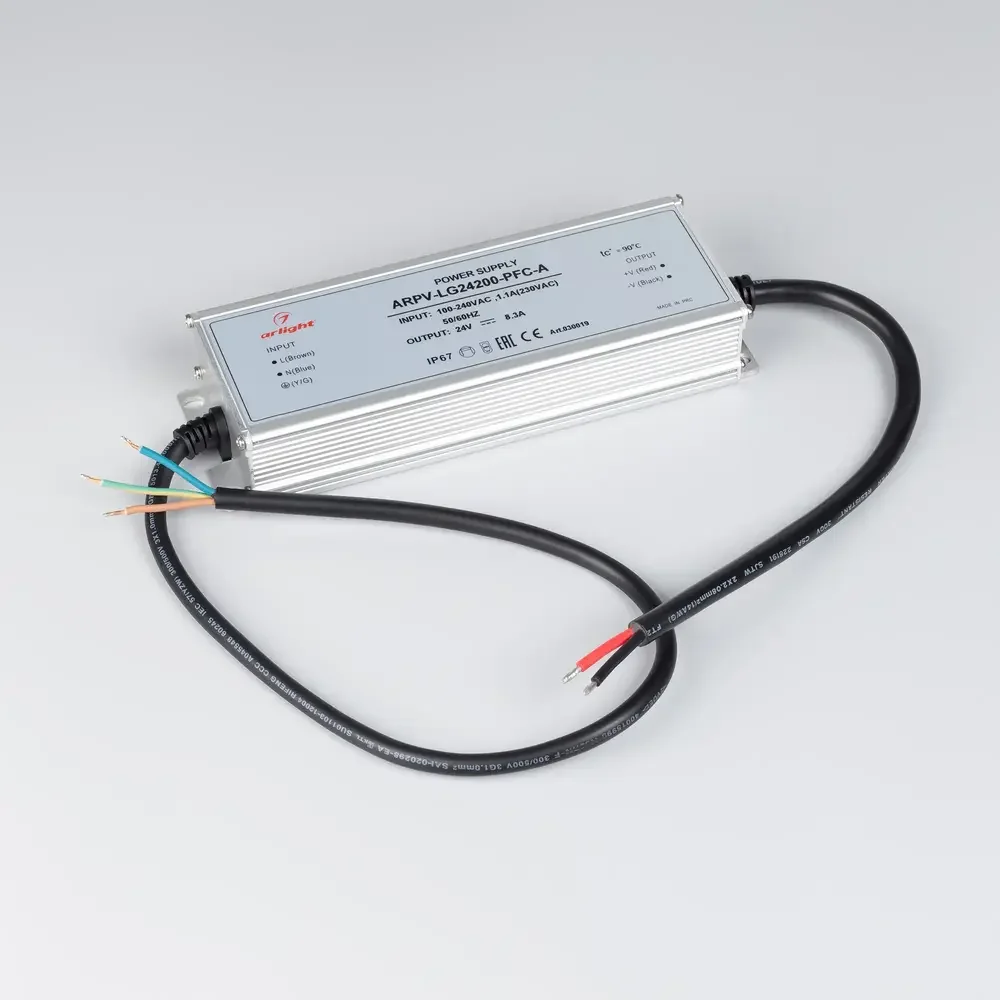 Блок питания ARPV-LG24200-PFC-A (24V, 8.3A, 200W) (Arlight, IP67 Металл, 5 лет)
