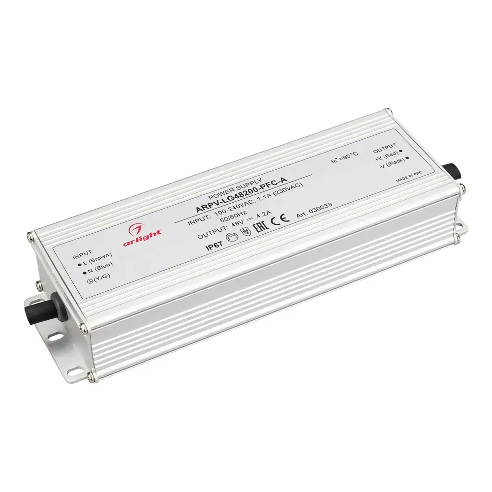 Блок питания ARPV-LG48200-PFC-A (48V, 4.2A, 200W) (Arlight, IP67 Металл, 5 лет)