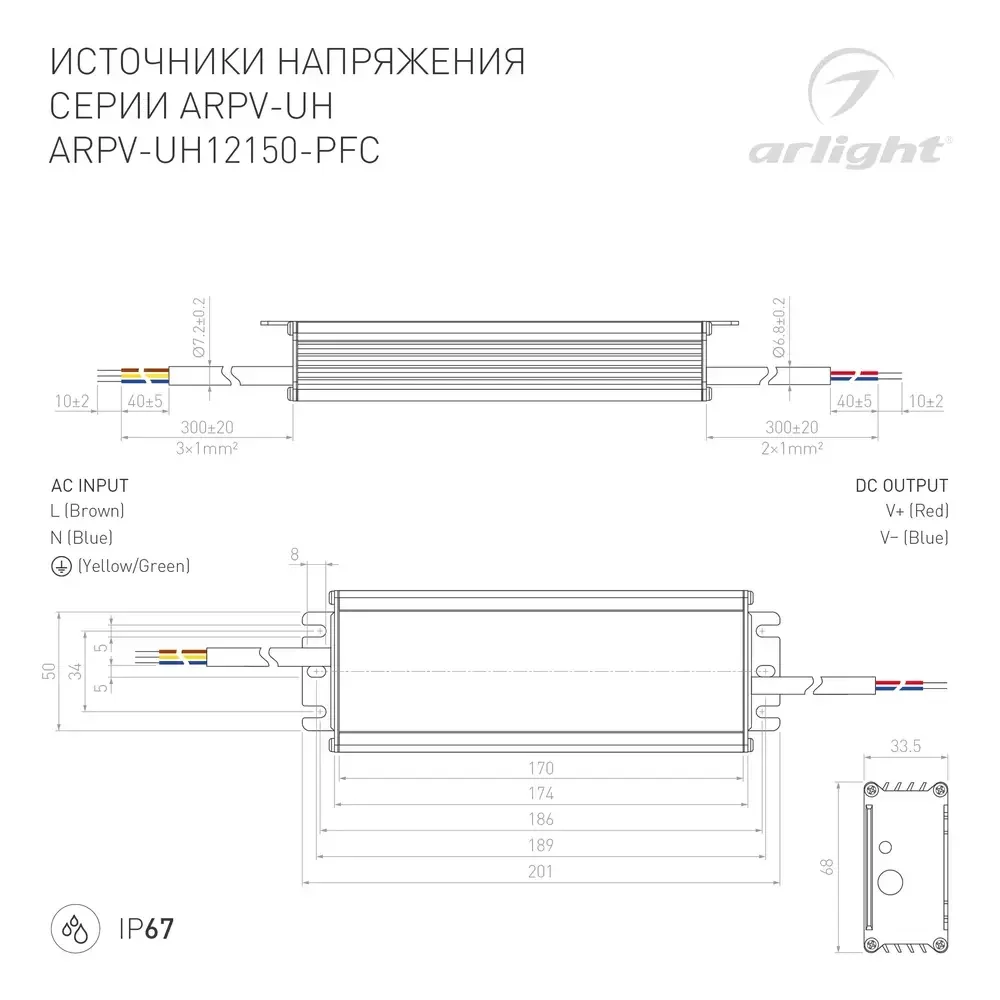 Блок питания ARPV-UH12150-PFC (12V, 12.5A, 150W) (Arlight, IP67 Металл, 7 лет)