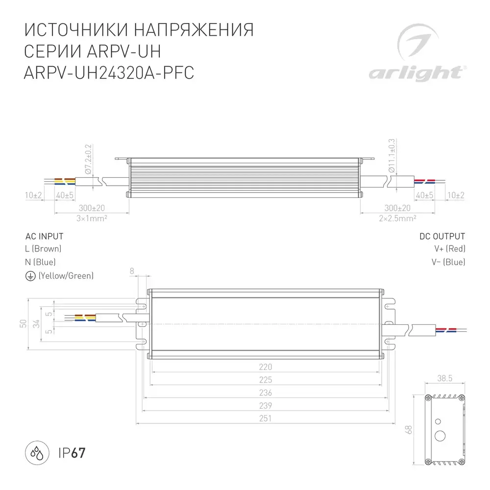 Блок питания ARPV-UH24320A-PFC (24V, 13.3A, 320W) (Arlight, IP67 Металл, 7 лет)