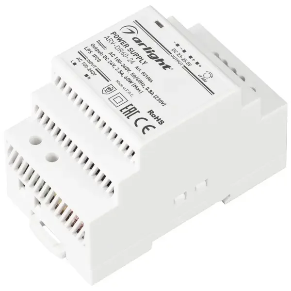 Блок питания ARV-DR60-24 (24V, 2.5A, 60W) (Arlight, IP20 DIN-рейка)