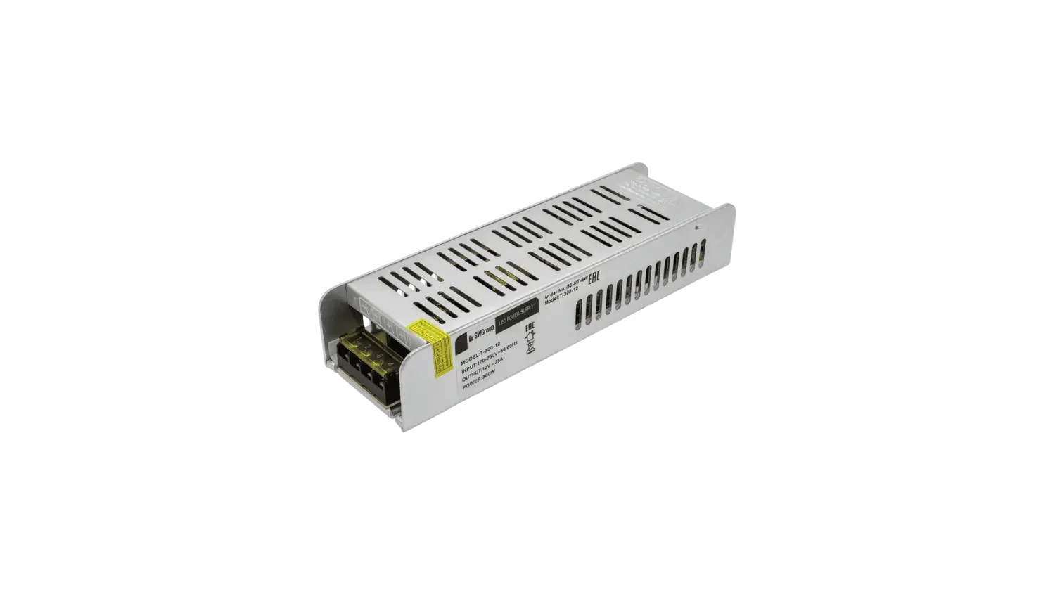 Блок питания компактный для светодиодных лент (узкий), 300 W, 12V, T-300-12