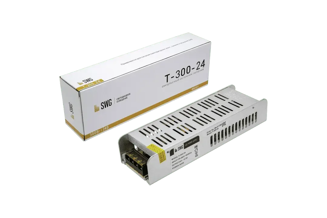 Блок питания для светодиодных лент компактный (узкий), 300 W, 24V, T-300-24