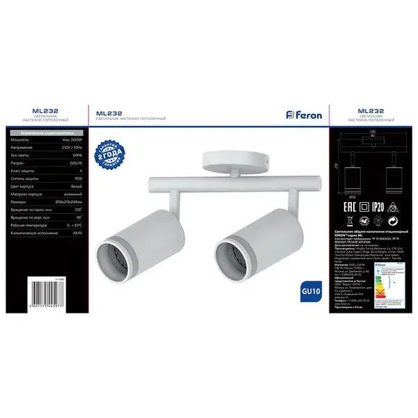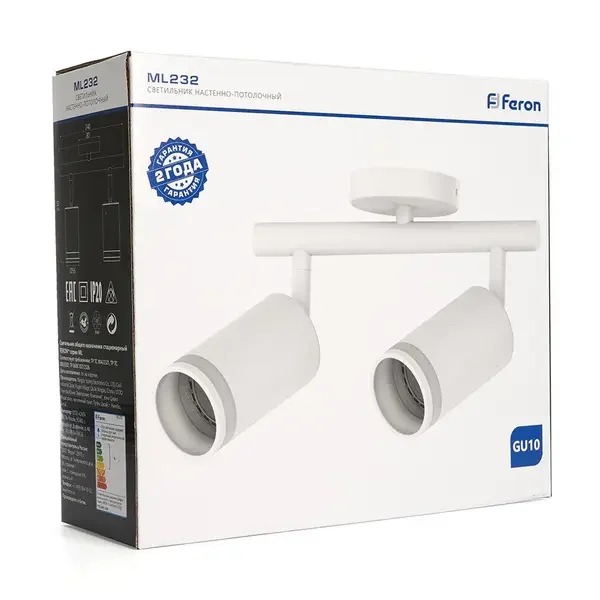Cветильник настенно-потолочный под лампу GU10, белый ML232 LUNA