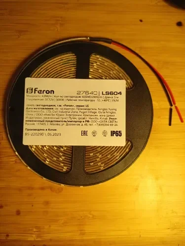 Светодиодная лента LS604 на базе светодиодов 2835 с плотностью 60 шт/м. Напряжение питания 12 В, мощность 4,8 Вт/м. Степень защиты IP65 позволяет использовать ленту во влажных помещениях и на открытых участках с защитой от прямых брызг. Световой поток 700 люмен, цветовая температура 3000 К (теплый белый свет), индекс цветопередачи CRI 80. Длина катушки 5 метров, кратность резки 50 мм.