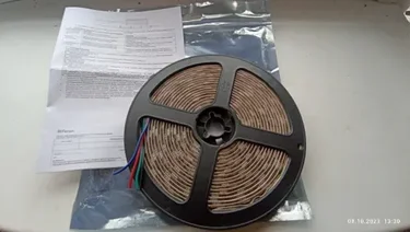 RGB-лента на светодиодах 5050 с плотностью 60 шт/м и мощностью 14,4 Вт/м. Напряжение питания 12 В. Степень защиты IP65 позволяет использовать ленту во влажных помещениях и на улице под навесом. Длина катушки 5 м, кратность резки 50 мм.