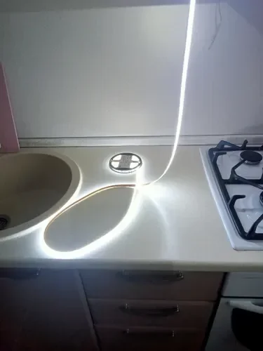 Лента применяется для подсветки кухонных рабочих поверхностей, зеркал в ванных комнатах, витрин и полок в технических помещениях. Защита IP65 позволяет монтировать её в зонах с повышенной влажностью и брызгами воды. Холодный спектр света делает её удобной для освещения функциональных зон, где требуется хорошая видимость.