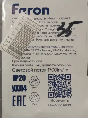 Лента подходит для внутреннего освещения: подсветка полок в магазинах, витрины, рабочие зоны кухонь, офисные помещения, декоративная подсветка потолков и ниш. Использование только в сухих помещениях без прямого контакта с водой.