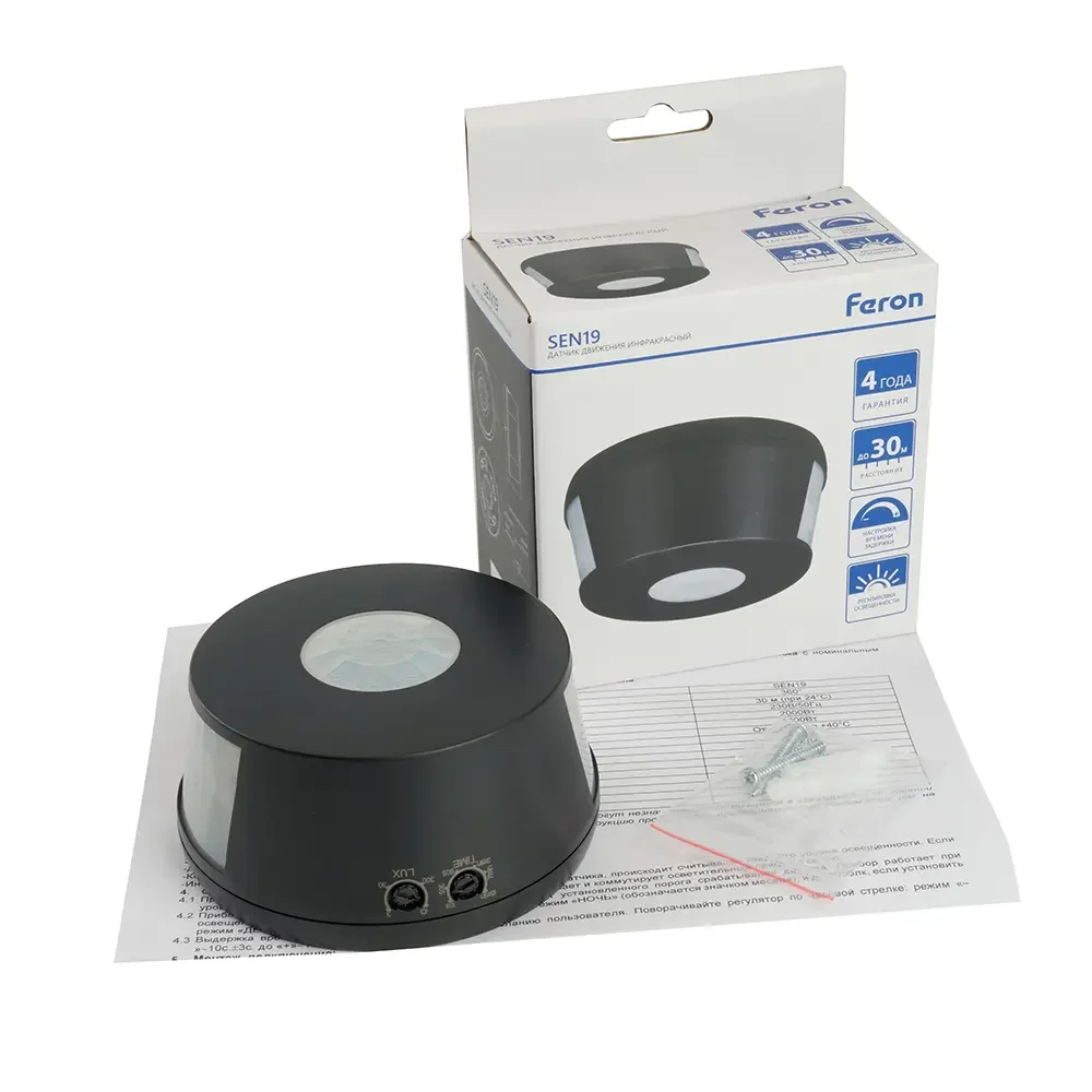 Датчик движения 2000W 30m 360°(верт.) чёрный SEN19