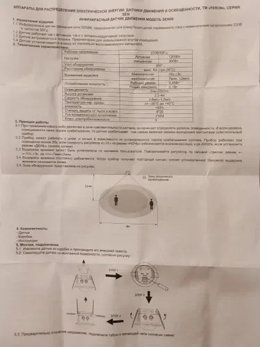 Датчик движения 230V 1200W 6m 360° белый SEN86