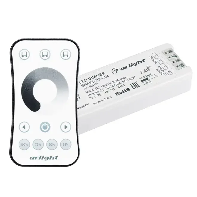 Диммер SMART-DIM-SET-RING (12-24V, 1x8A, ПДУ 2.4G) (Arlight, IP20 Пластик, 5 лет)