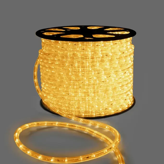 Дюралайт INOXHUB двухжильный 13 мм, круглый, бухта 100м, шаг резки 1м, 36 светодиодов на метр, фиксинг, 220В, IP65, ЖЁЛТЫЙ