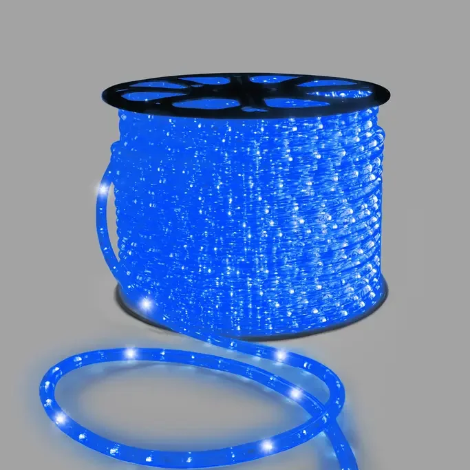 Дюралайт INOXHUB двухжильный 13 мм, круглый, бухта 100м, шаг резки 1м, 36 светодиодов на метр, мерцающий, 220В, IP65, СИНИЙ