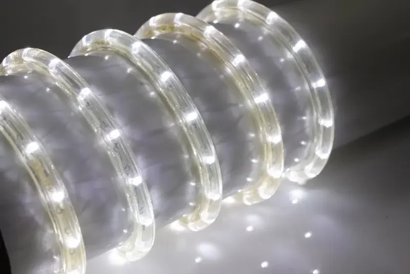 - Дюралайт — гибкая светодиодная трубка, защищенная прочным ПВХ-покрытием. Устойчива к влаге и механическим повреждениям, подходит для уличного использования, идеальна для праздничного освещения, рекламных конструкций и декоративной подсветки.