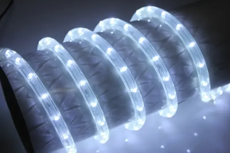 - Дюралайт — гибкая светодиодная трубка, защищенная прочным ПВХ-покрытием. Устойчива к влаге и механическим повреждениям, подходит для уличного использования, идеальна для праздничного освещения, рекламных конструкций и декоративной подсветки.