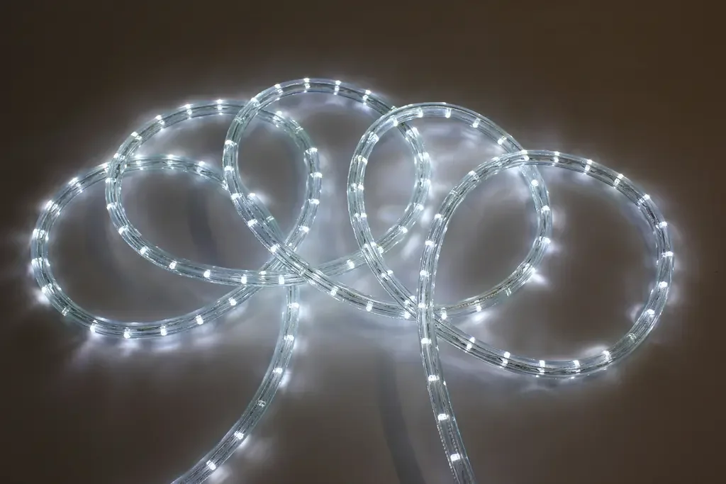 - Дюралайт — гибкая светодиодная трубка, защищенная прочным ПВХ-покрытием. Устойчива к влаге и механическим повреждениям, подходит для уличного использования, идеальна для праздничного освещения, рекламных конструкций и декоративной подсветки.