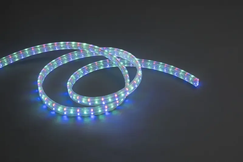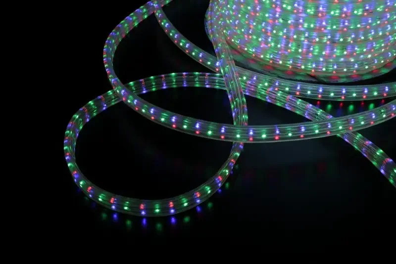 - Дюралайт — гибкая светодиодная трубка, защищенная прочным ПВХ-покрытием. Устойчива к влаге и механическим повреждениям, подходит для уличного использования, идеальна для праздничного освещения, рекламных конструкций и декоративной подсветки.