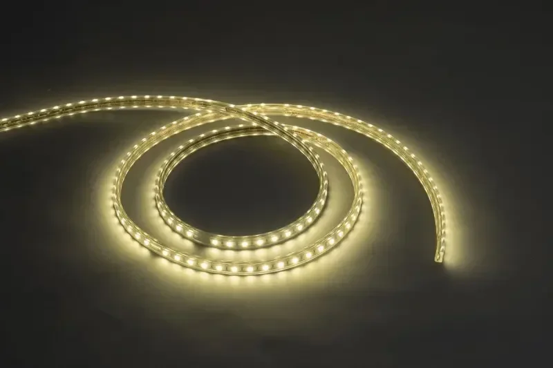 - Лента на 220 В подключается напрямую без блока питания, что упрощает монтаж.