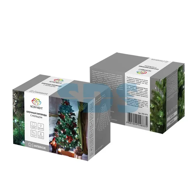 Елочная гирлянда с кольцом, 7 нитей по 1,5 метра, цвет диодов белый, не соединяется