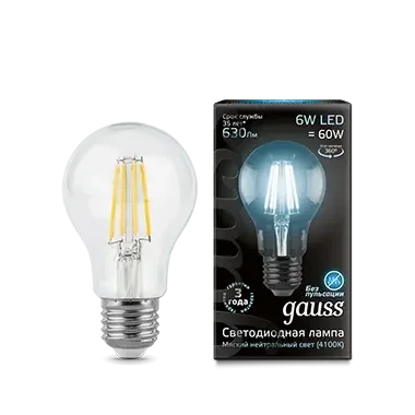 Gauss LED Filament A60 E27 6W 4100К 1/10/51