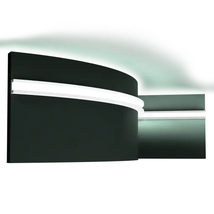Гибкая версия CX190. Тонкий и ударостойкий U-образный профиль. Создайте в вашем интерьере особую атмосферу с помощью непрямого светодиодного освещения. Разработан дизайнером Орио Тонини. Круглые стены или изогнутые поверхности не представляют никакой трудности для технологии Flex. Примечания: Используйте DecoFix Pro или DecoFix Power. Для крепления к стене должны использоваться шурупы. Используйте алюминиевую ленту на внутренней стороне профиля или алюминиевый профиль для светодиодов, чтобы свет не просвечивал сквозь молдинг. Flex Radius: R min = 30 cm, R* min = 130 cm.