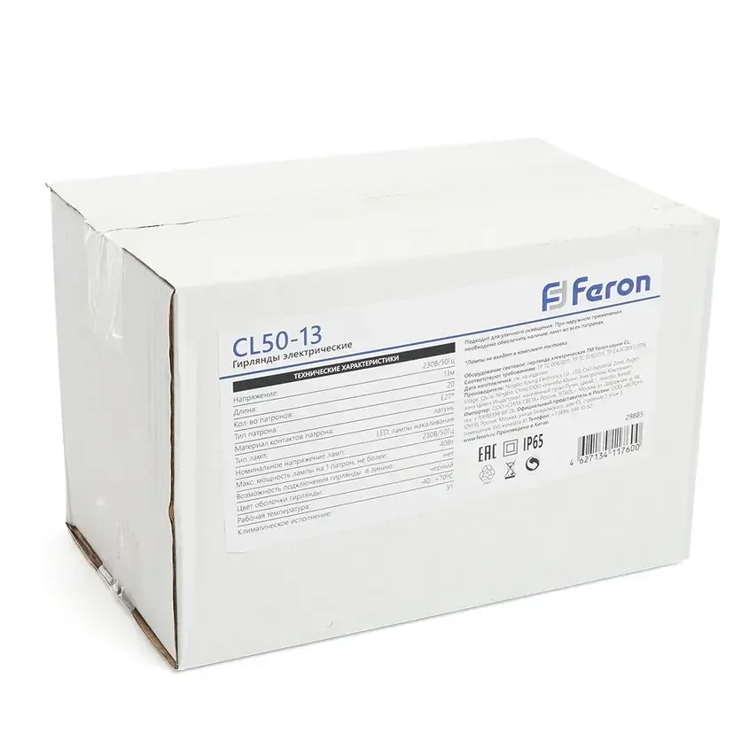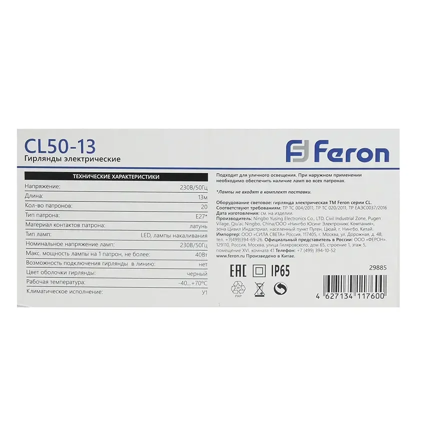 Гирлянда 230V 20 E27 черный, шаг 50cm, IP 65, 13м (3м сетевой шнур), CL50-13