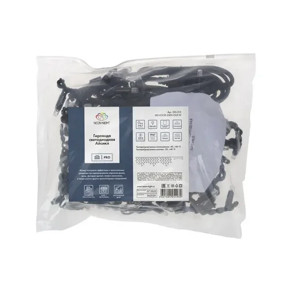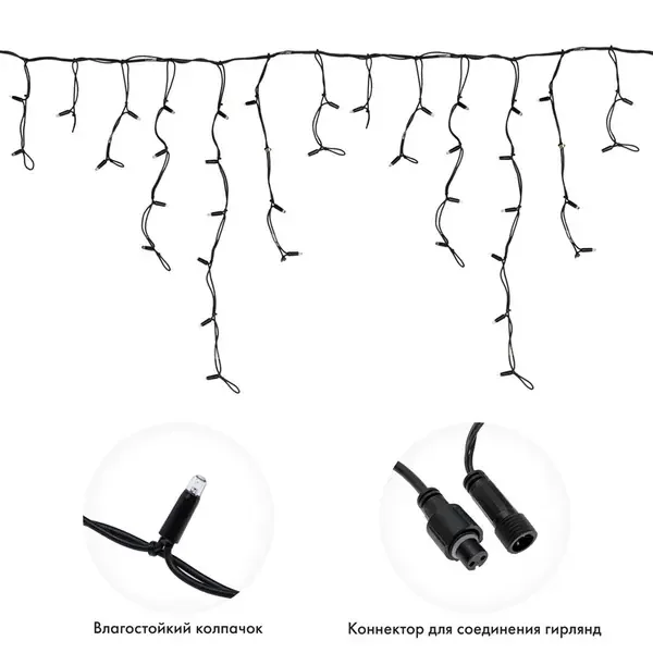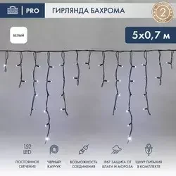 Гирлянда Айсикл (Бахрома) светодиодная 5х0,7 м, 152 LED, черный провод каучук, белое свечение NEON-NIGHT