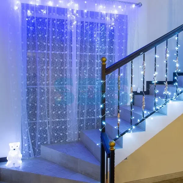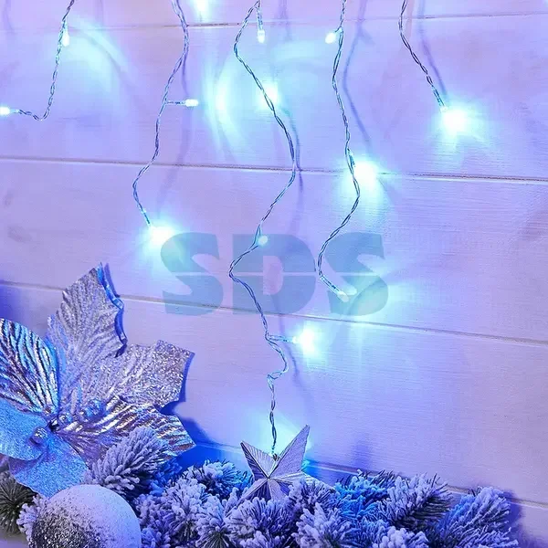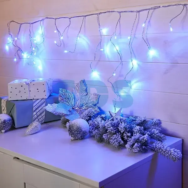 Гирлянда Айсикл (бахрома) светодиодный, 1,8 х 0,5 м, Прозрачный провод, 230 В, диоды синие