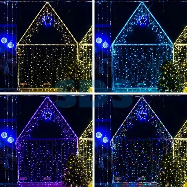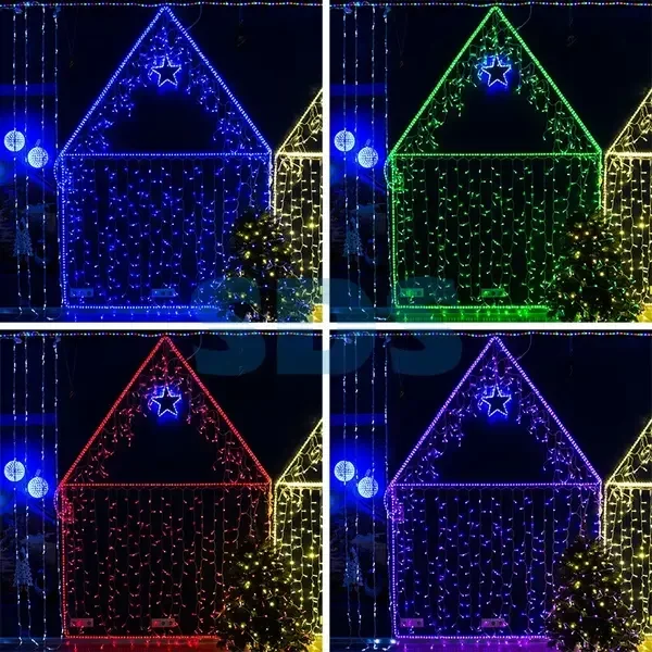 Гирлянда Айсикл (бахрома) светодиодный, 4,8 х 0,6 м, Прозрачный провод, 230 В, диоды RGB, 176 LED NEON-NIGHT