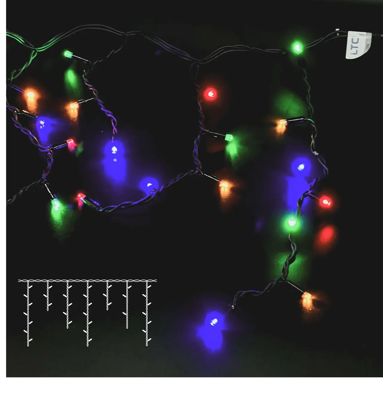 Гирлянда Бахрома 3,1 х 0,5 м Разноцветная 220В, 120 LED, Провод Черный Каучук, IP65