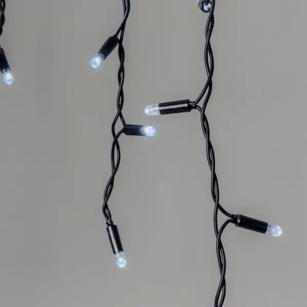 Гирлянда Бахрома 3,1 x 0,5 м Белая с Мерцанием Белого Диода 220В, 120 LED, Провод Черный Каучук 2,3мм, IP65